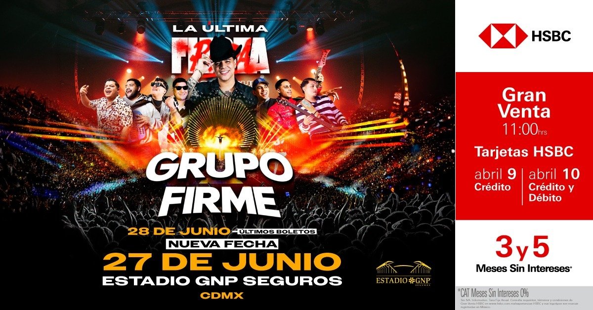 Grupo Firme está listo para hacer historia una vez más en el Estadio GNP Seguros el próximo 27 de junio (NUEVA FECHA) y el 28 de junio (ÚLTIMOS BOLETOS)