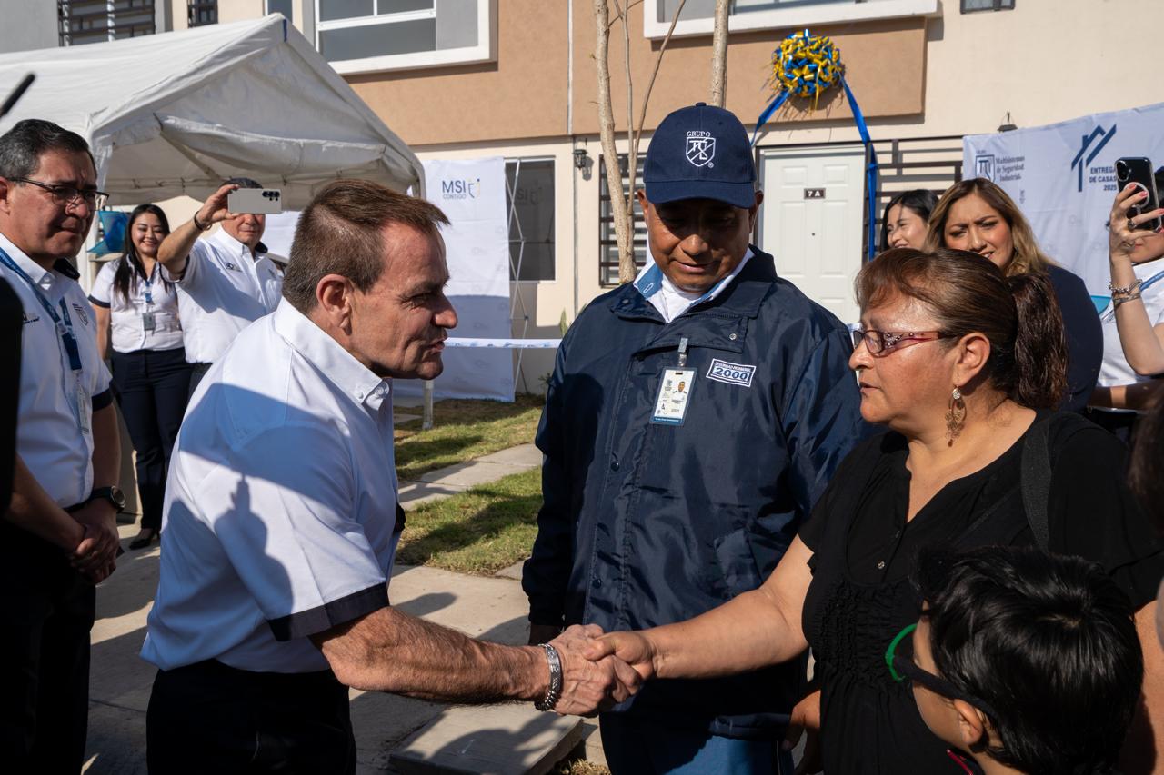 El Presidente Fundador de GMSI, el Lic. Alejandro Desfassiaux, en compañía del actual Presidente de Grupo Multisistemas de Seguridad Industrial, el Lic. Alexandro Desfassiaux, entregaron personalmente a los nuevos propietarios y a sus familias las llaves de su nuevo hogar, al tiempo que reconocieron su desempeño y lealtad a la empresa.