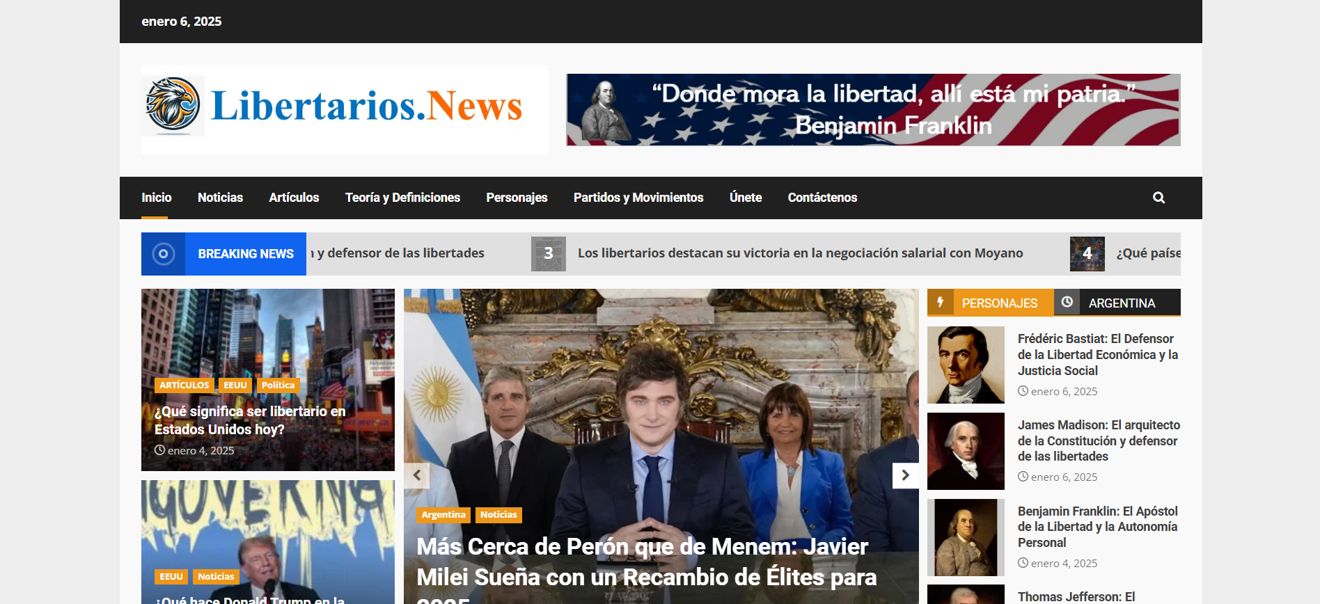 Con un enfoque claro en ofrecer contenido riguroso y atractivo, Libertarios.News está diseñado para ser una plataforma de referencia en español que conecta a comunidades libertarias de todo el mundo. Desde noticias de actualidad y debates sobre teoría política, hasta perfiles de los personajes más influyentes del pensamiento libertario, este portal promete convertirse en un punto de encuentro digital para quienes comparten estos ideales.