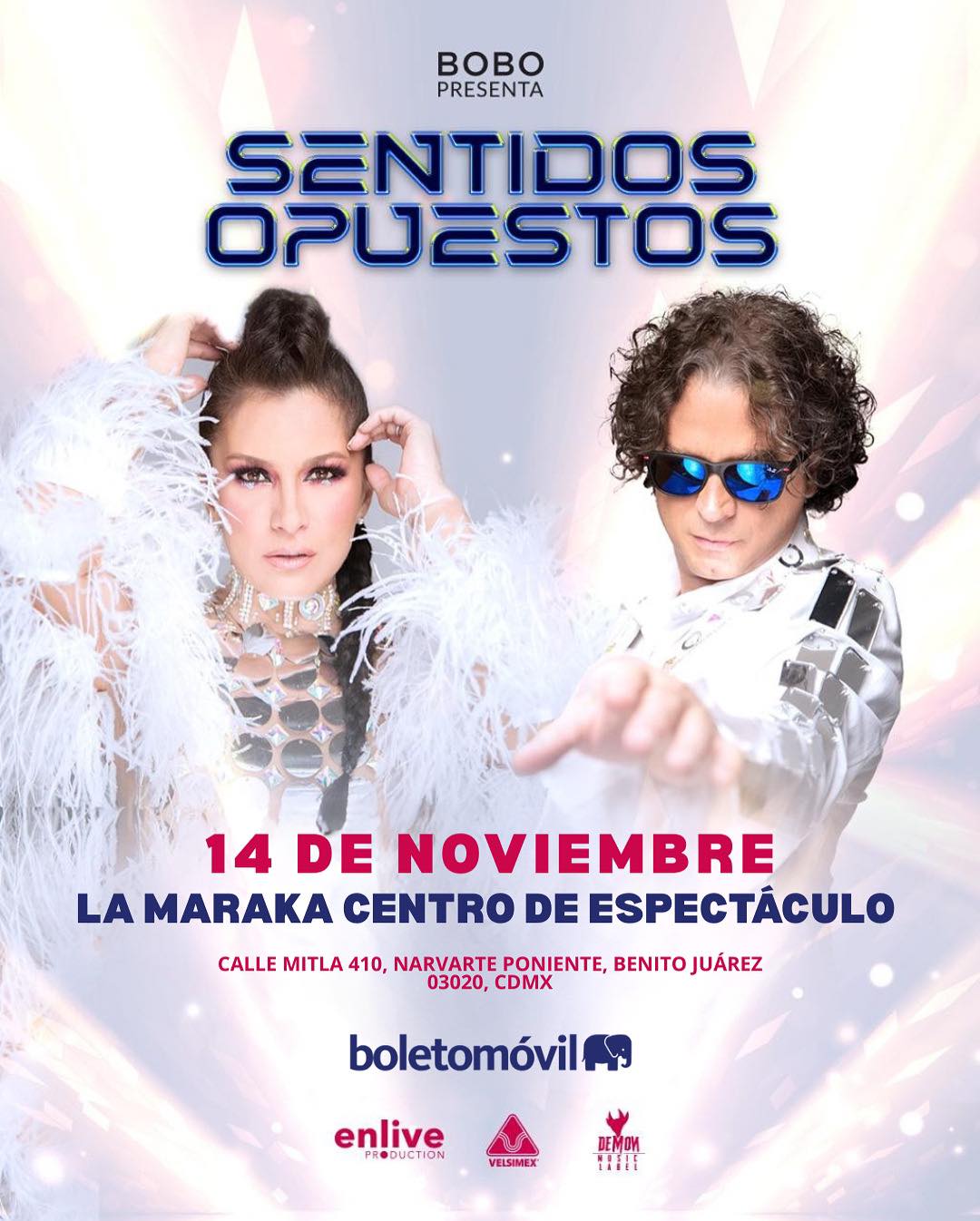 El emblemático dúo mexicano Sentidos Opuestos, conformado por Alessandra Rosaldo y Chacho Gaytán, se presentará el próximo Viernes 14 de Noviembre de 2025 en el histórico Centro de Espectáculos La Maraka de la Ciudad de México. Este evento, organizado por la promotora EnLive, promete una velada llena de nostalgia y energía, reviviendo los éxitos que marcaron la escena musical de los años 90. Los boletos para este esperado concierto están disponibles a través del sistema Boletomovil.