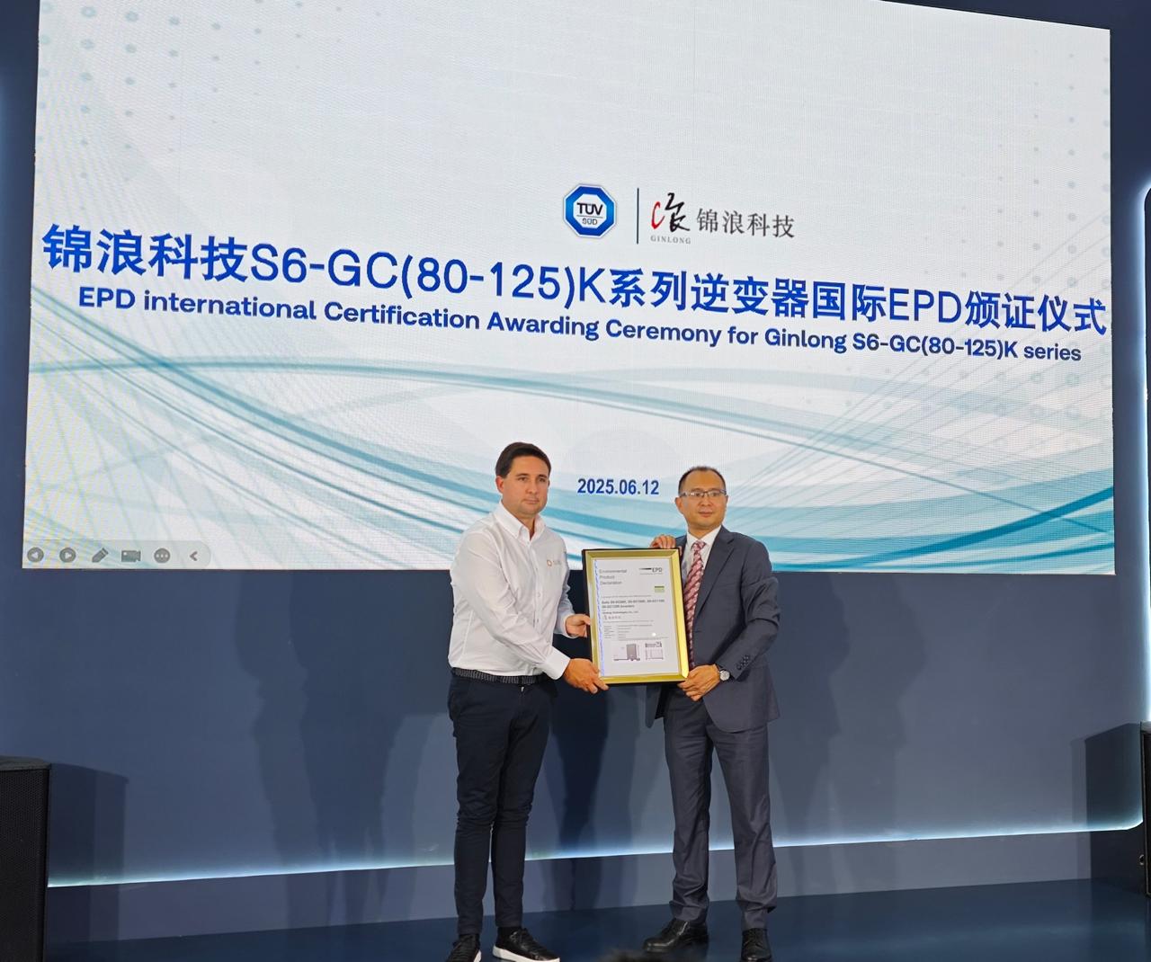 Shanghái, China – 12 de junio de 2025. Durante la Exhibición Internacional de Energía Solar e Inteligente SNEC, TÜV SÜD entregó oficialmente a Solis las Declaraciones Ambientales de Producto (EPD, por sus siglas en inglés) para su serie de inversores comerciales de Sexta Generación, S6-GC(80–125)K.