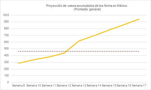 La tendencia actual es preocupante: en solo siete semanas (de la semana 9 a la 15), los casos de tos ferina aumentaron de 288 a 749, más del doble. De continuar este ritmo, con un incremento promedio de más de 80 casos por semana, México podría superar los 930 casos antes de que termine mayo, lo que representaría un riesgo sanitario considerable.