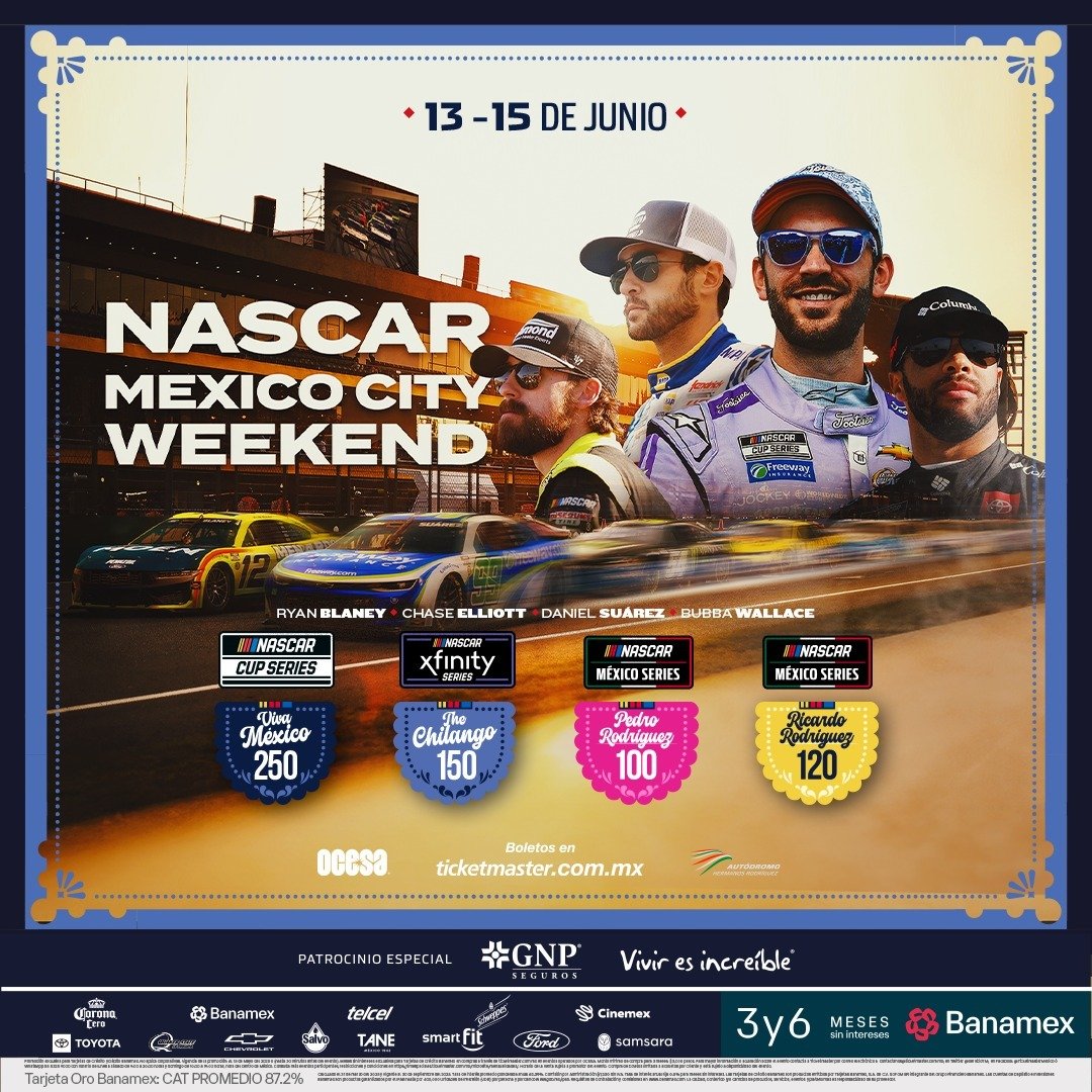 El rugir de los motores saldrá de la pantalla y llegará al Autódromo Hermanos Rodríguez con toda la energía y la adrenalina del automovilismo el próximo 13, 14 y 15 de junio, en el NASCAR Mexico City Weekend, en dónde por primera vez se realizará una carrera puntuable fuera de Estados Unidos de la máxima categoría de la NASCAR. Si quieres escuchar en vivo la banda sonora de los stock cars, y ser testigo de un momento histórico en el automovilismo mexicano, consigue tus entradas a partir de los $1,800 pesos a través del sistema Ticketmaster.